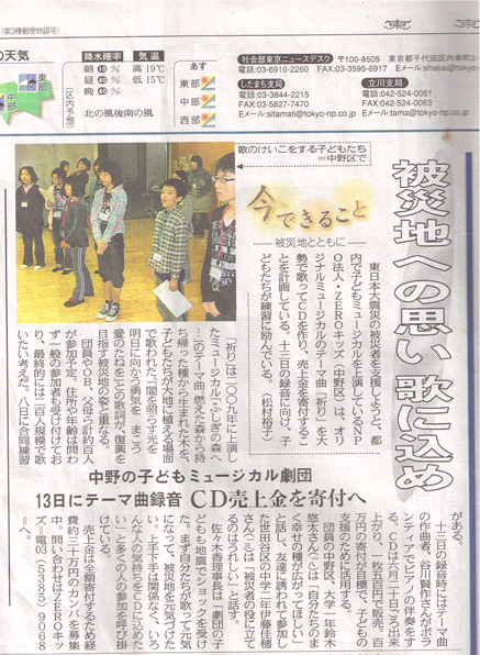 ZEROキッズと仲間たちが東日本大震災復興支援CDをつくりました! |
