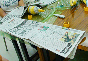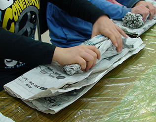 新聞紙の下準備をする