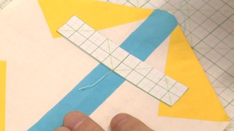 ボンドをつけて、たこの一番上の横の線にあわせて、真ん中になるようにはりつけます。これが横のほねになります。