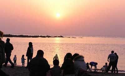 | いよいよ、海に行く当日。お天気はまあまあ、暖かい春の陽気です。サンプラザ前からバスに乗り込みいざ出発。意外と道がすいていたので予定より早く到着し、バーベキューの準備。5班に分かれ、それぞれのかまどでバーベキュー開始です。 | ||